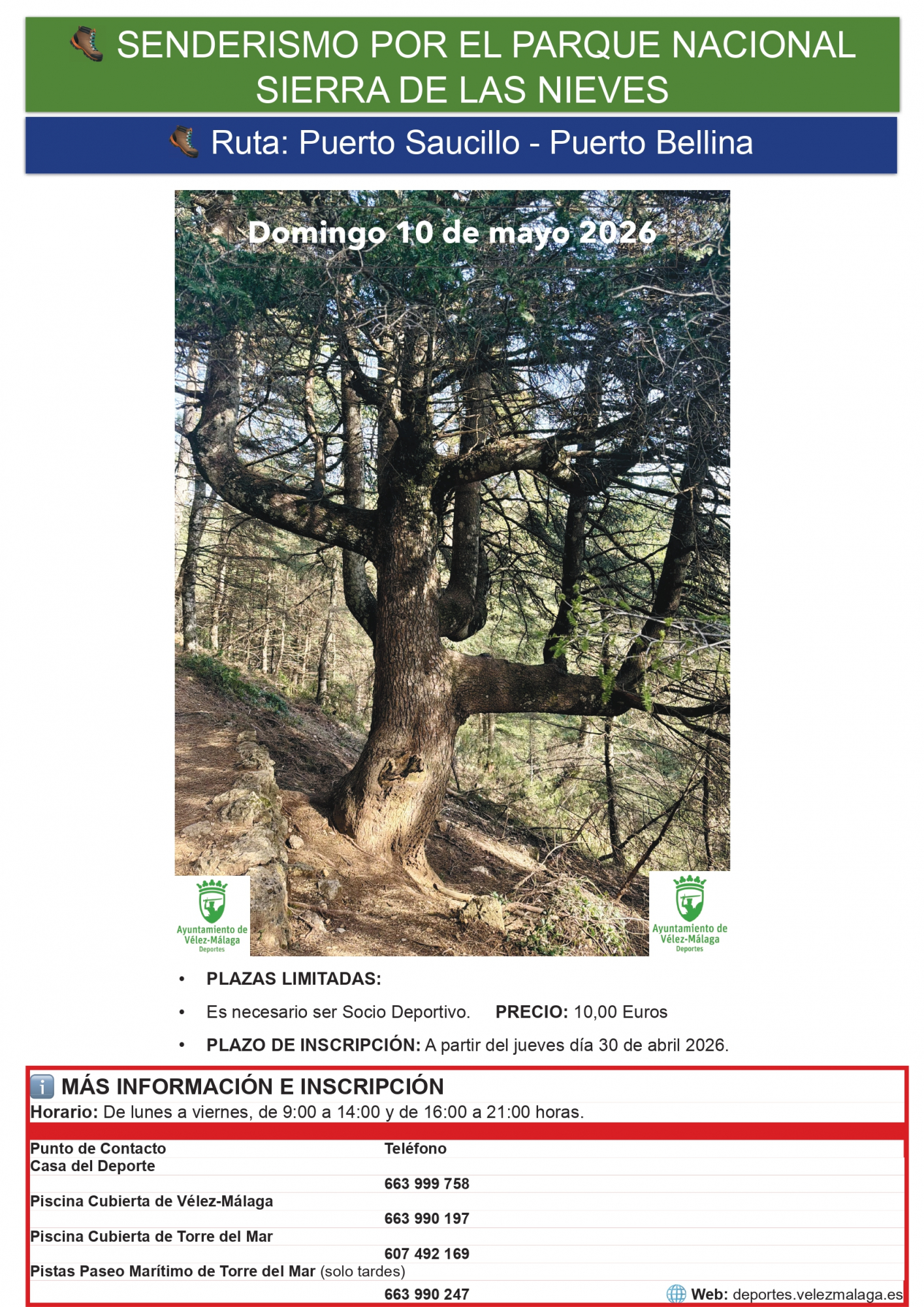 - Salida Vélez- Málaga: 07:00 h. Parada de Bus Mercado Municipal (junto Guardia Civil).